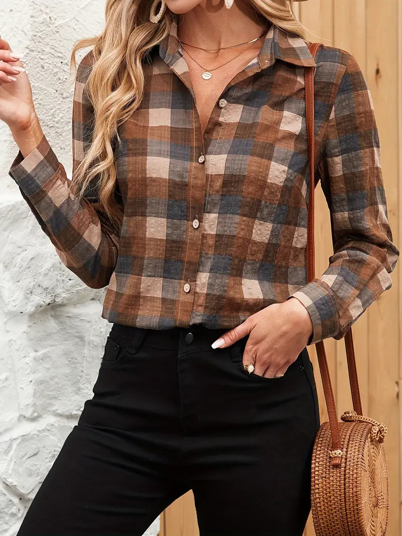 - Design: Elegantes Karomuster, langärmlig mit Reverskragen und Knopfleiste für eine stilvolle Optik.