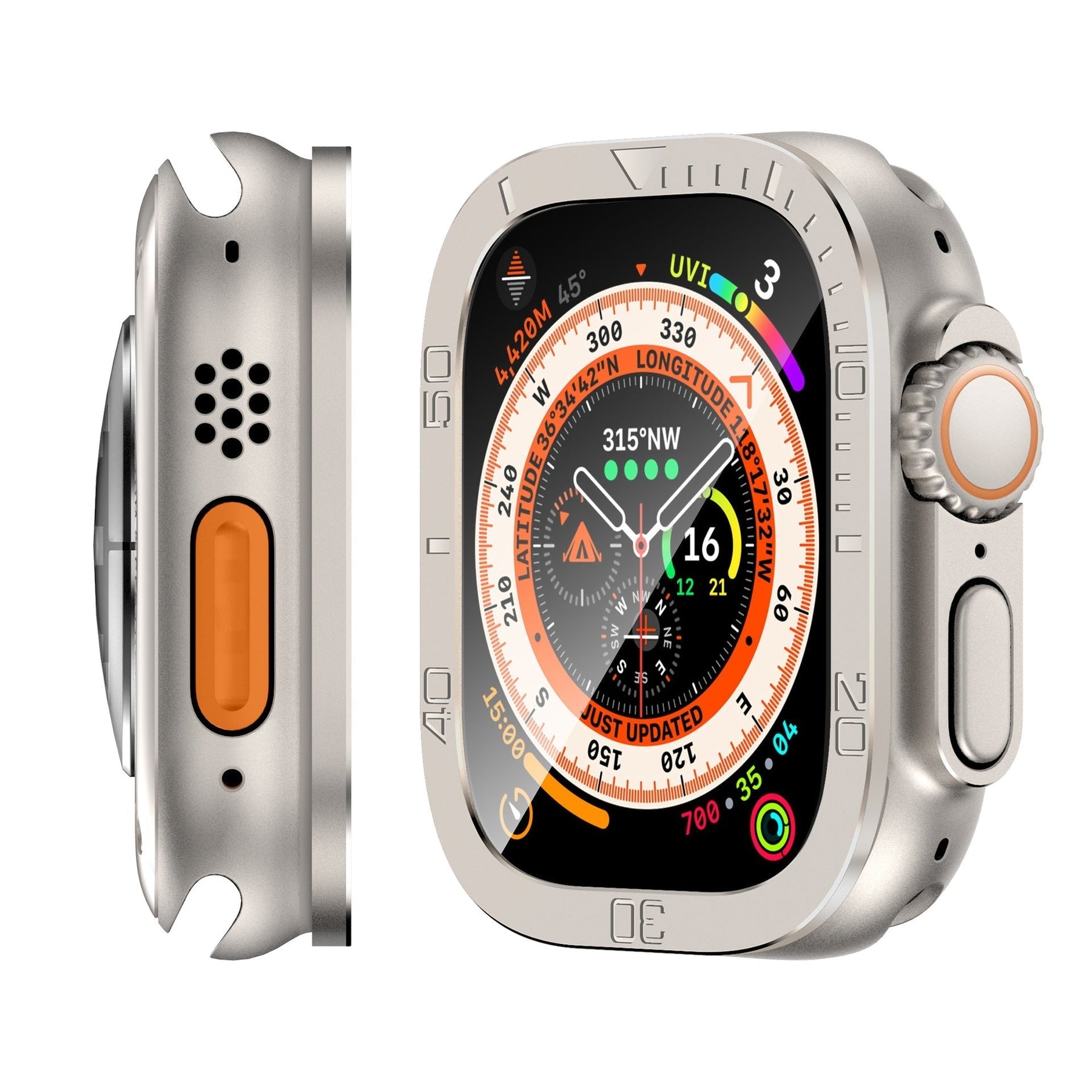 Für Apple Watch Ultra 2 49mm / Ultra 49mm Tempered Glass Screen Protector mit Metallrahmen und eingebauter klarer Folie